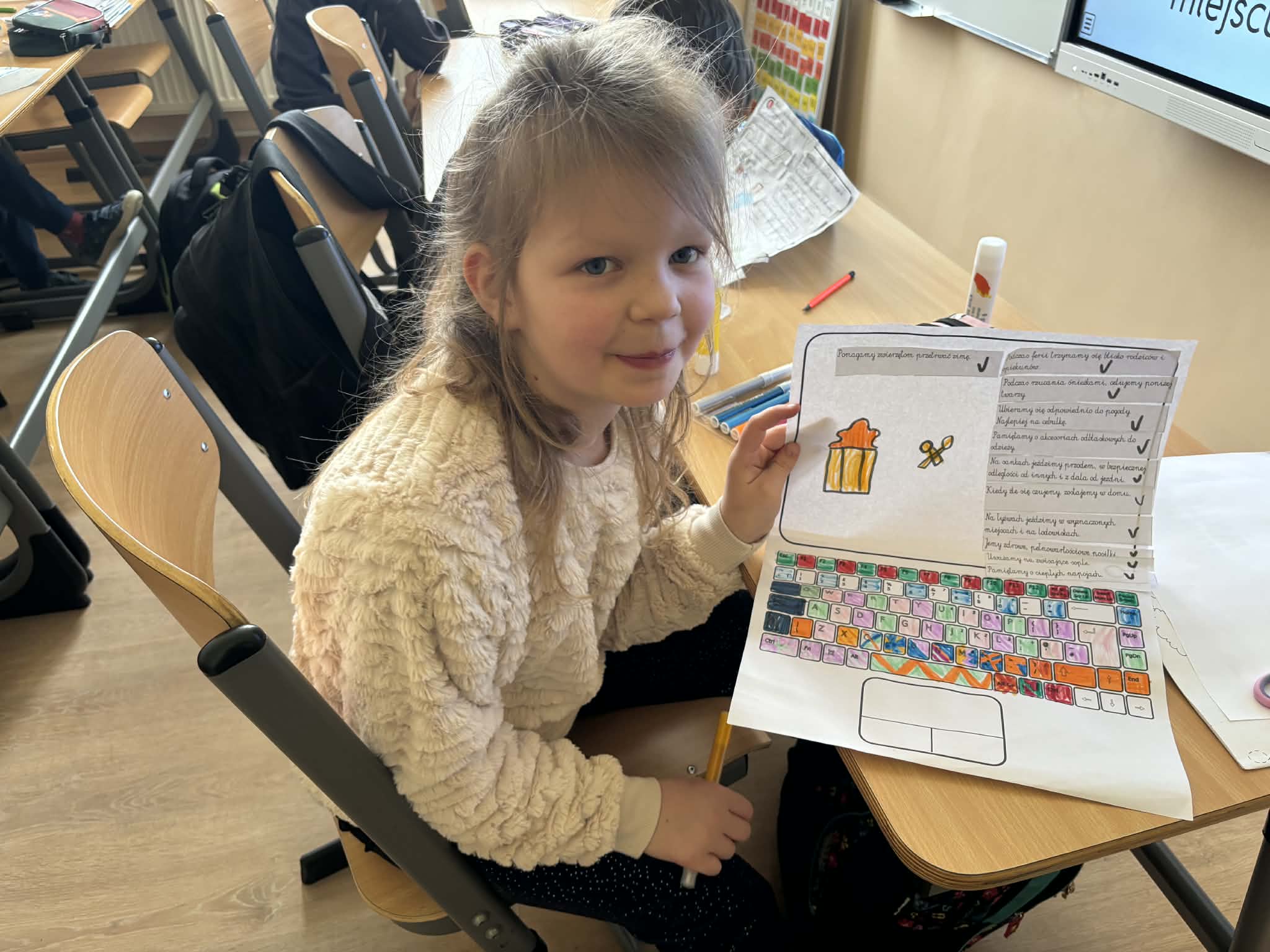 Ferie zimowe to czas odpoczynku, zabawy i spotkań z rówieśnikami. Jednak należy pamiętać, że najważniejsze podczas zimowych aktywności jest bezpieczeństwo. W związku z tym w klasie 2 odbyły się zajęcia, podczas których dzieci przypomniały sobie jak postępować w różnych sytuacjach, aby zimowy wypoczynek był nie tylko radosny i udany, ale przede wszystkim bezpieczny. Na koniec dzieci wykonały pracę plastyczną , na której umieściły wszystkie poznane zasady bezpiecznego wypoczynku podczas ferii.