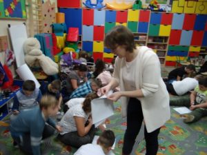 Warsztaty Wielkanocne 2017 – pani Kasia pomaga w tworzeniu pięknych pisanek