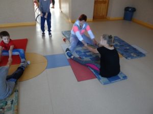 Zajęcia z W-F w czasie zimy listopad i grudzień 2016 – zdj. z p. Danusią: Maja, Paweł i Rafał