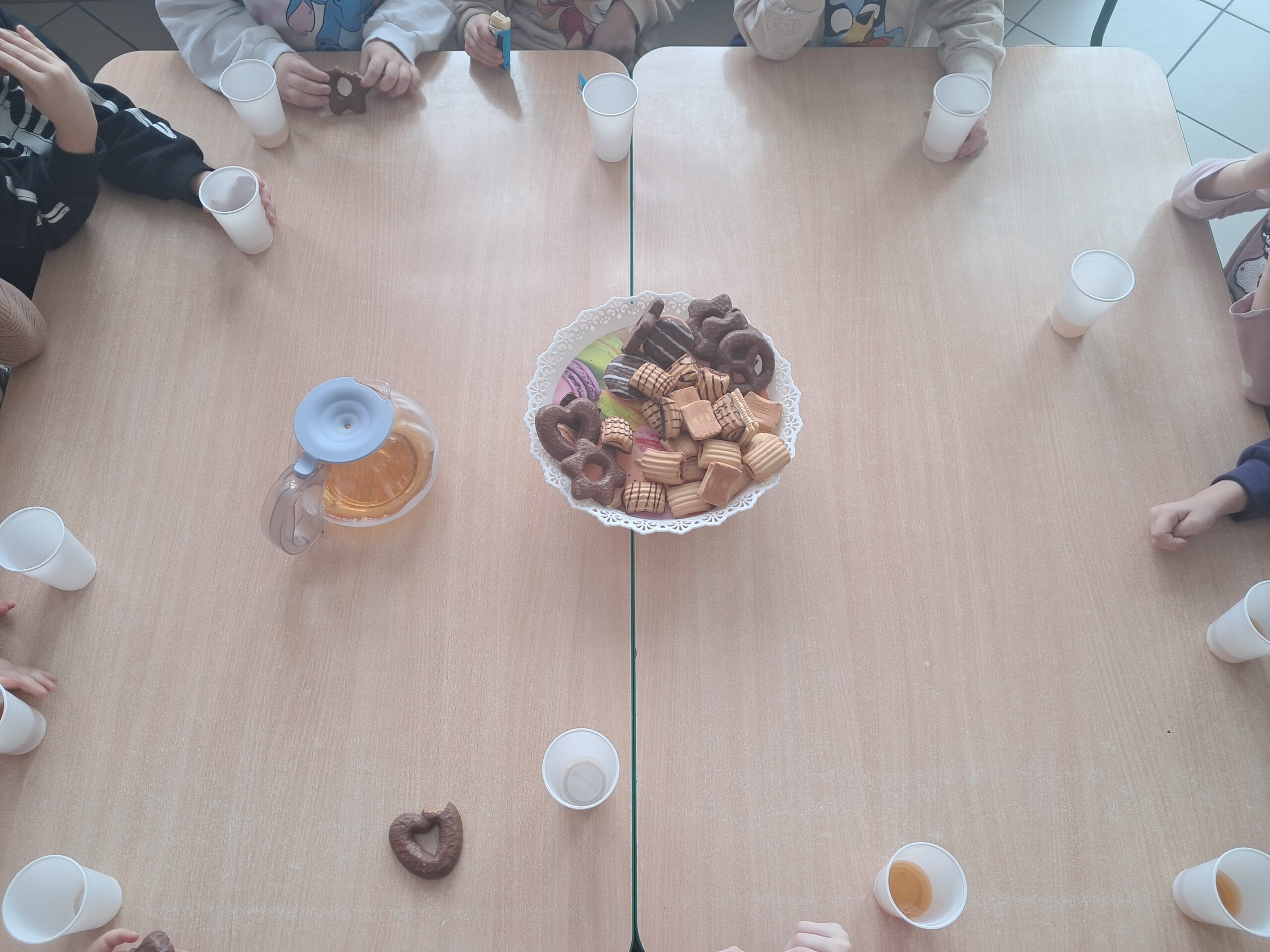 Zajęcia rozwijały sprawność manualną, kreatywność oraz wyobraźnię dzieci, a także dostarczyły im wiele radości. Po zakończeniu pracy wspólnie rozgrzaliśmy się gorącą herbatą z cytryną, a dzieci częstowały się pierniczkami i słodkimi ciasteczkami.