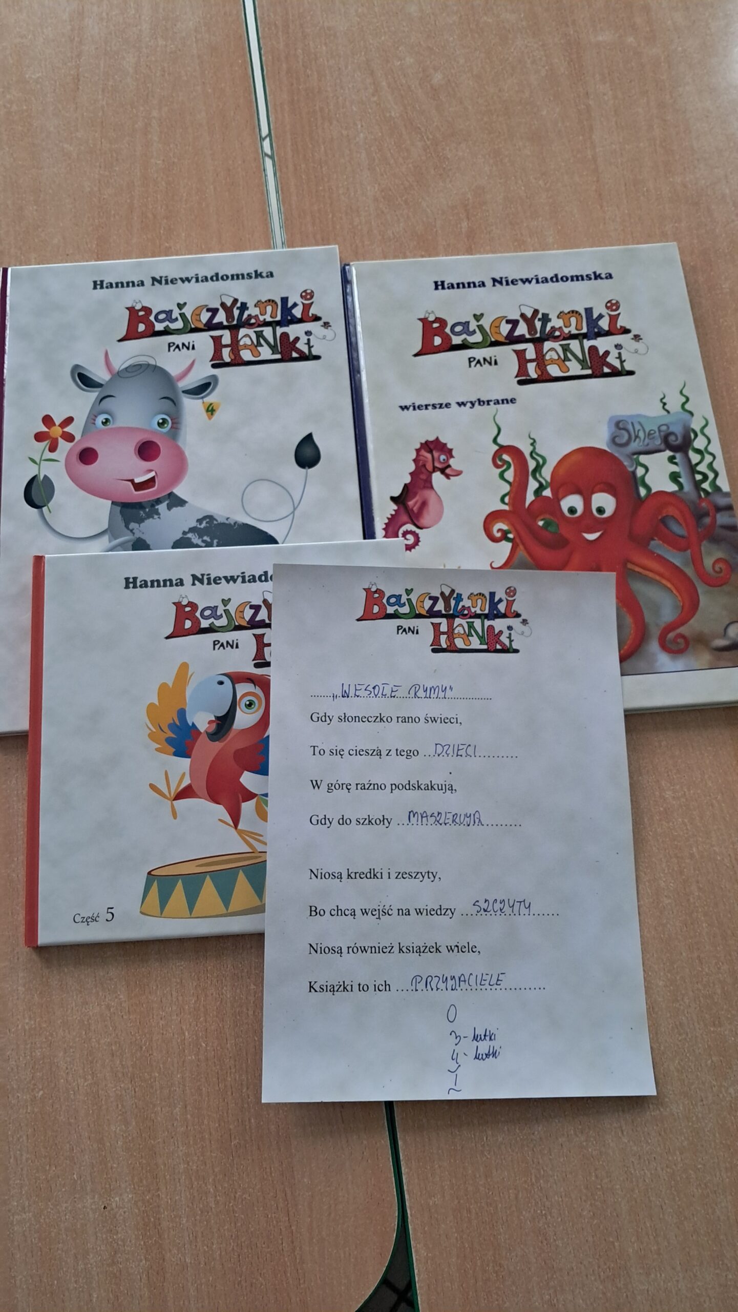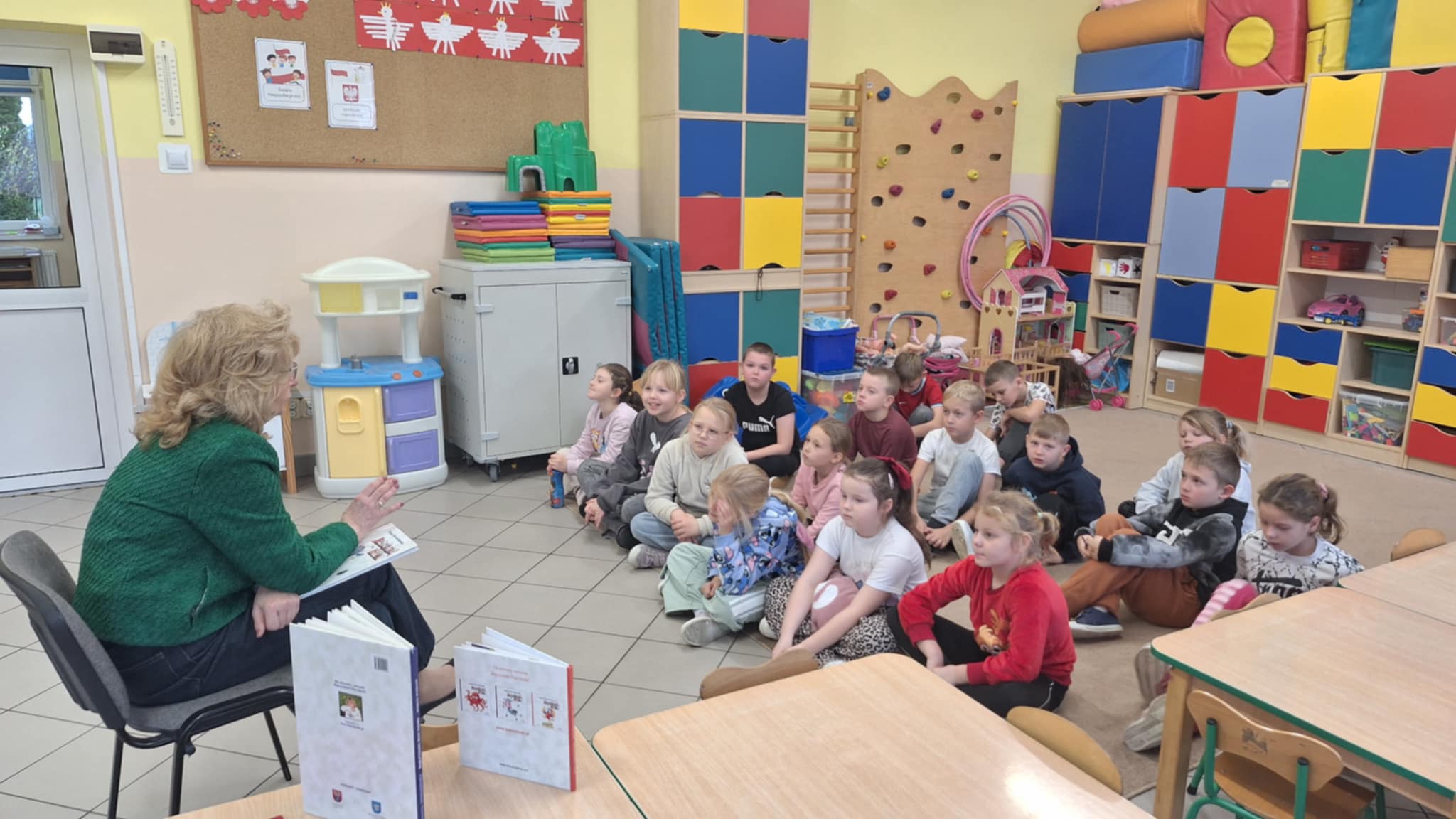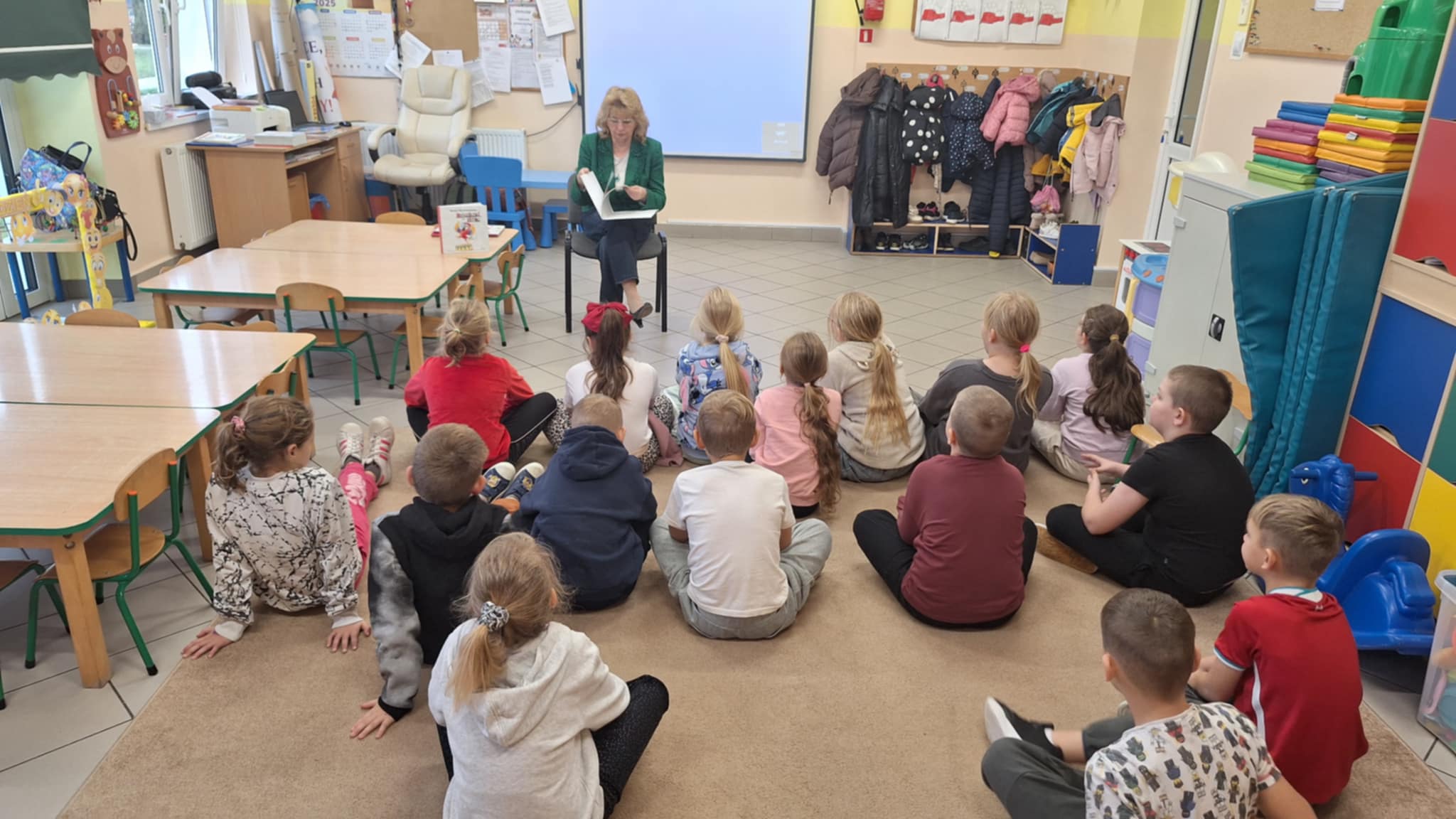 W naszej szkole odbyło się wyjątkowe spotkanie z autorką książek dla dzieci – Panią Hanną Niewiadomską. W wydarzeniu wzięły udział dzieci z przedszkola oraz uczniowie klas 1–3. Z ogromnym zainteresowaniem słuchały opowieści autorki o tym, jak powstają jej książki, wiersze i opowiadania.