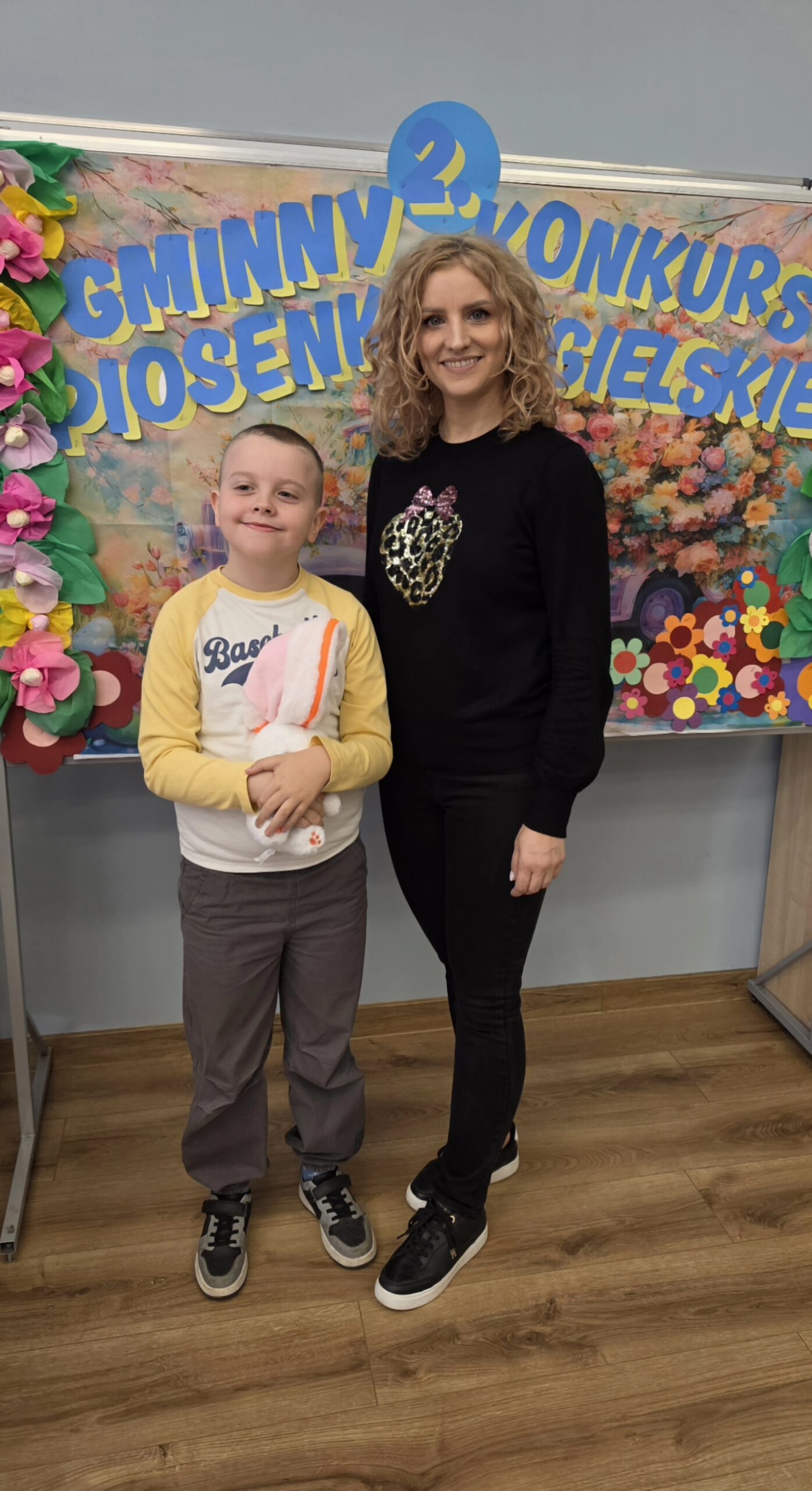 Bartosz, przygotowywany przez Panią Ninę Ziółkowską oraz mamę, zaprezentował niezwykły talent wokalny i językowy, dzięki czemu zdobył I miejsce w kategorii klas drugich. Jesteśmy ogromnie dumni z jego występu, zaangażowania i odwagi scenicznej.
